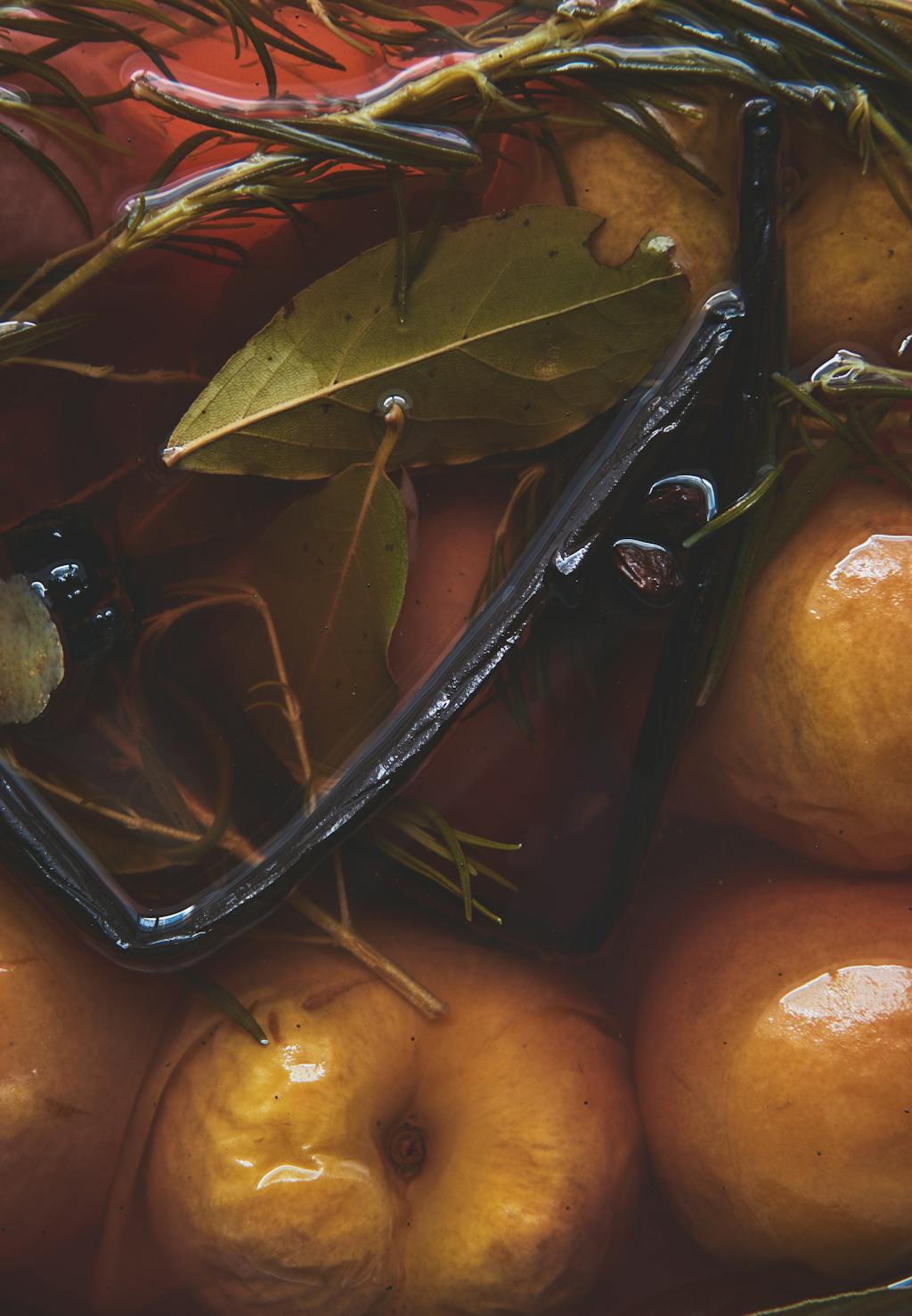 Pocherede ferskner i rosmarin & stjerneanis med vaniljeis