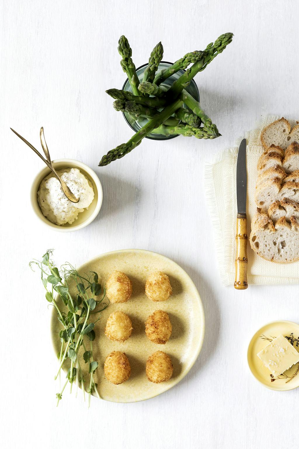Grønne asparges med vesterhavsdressing og friterede vagtelæg