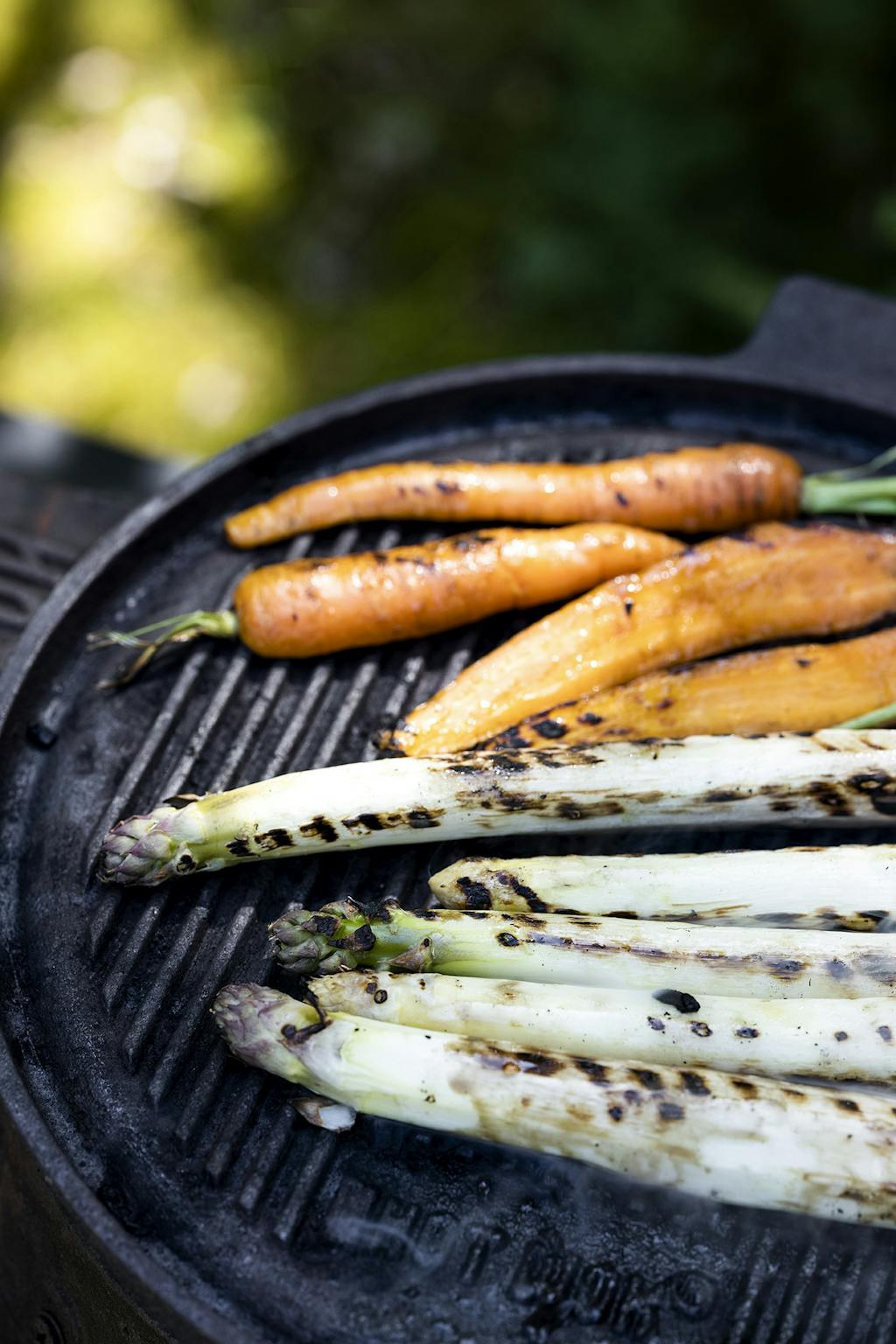 Grillmenu med grøntsager, fisk og andre lækkerier