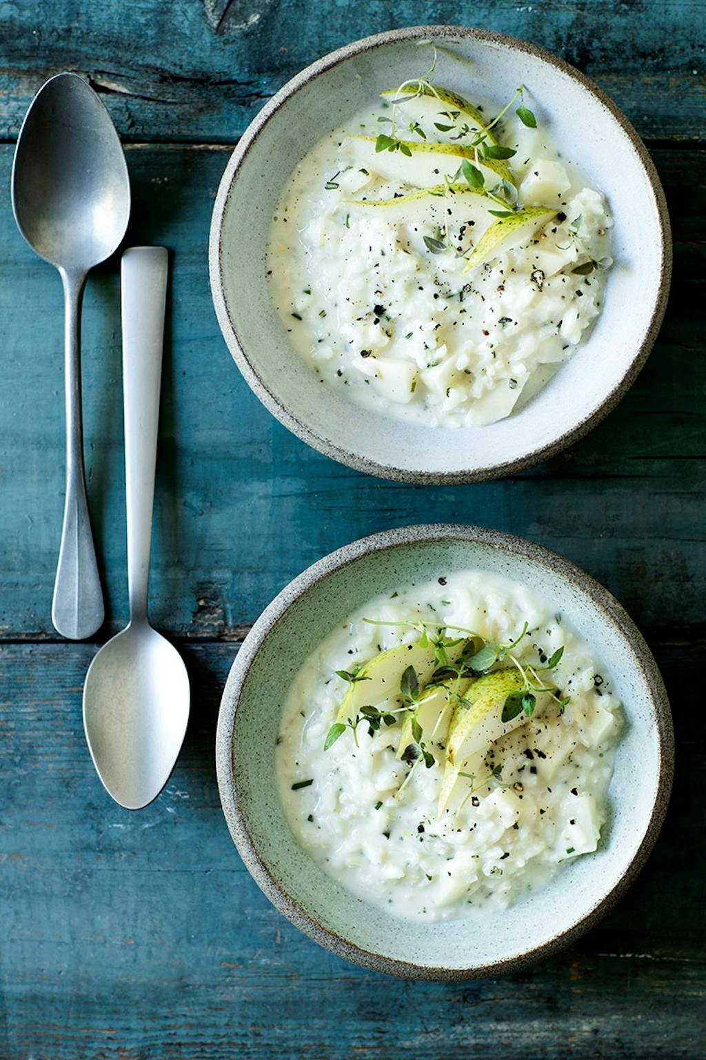 Hovedret Opskrift på cremet risotto En varm risotto er luksusversionen af comfort food. Af Lone Kjær — 30. december 2018 © Tia Borgsmidt Risotto i nye klæder. Skåle fra Gurli Elbækgaard, skeer i privateje. Risotto med knoldselleri, gedeost og pære Comfort food nummer et. Cremet risotto, der smager af vinter, med knoldselleri, cremet gedeost, pære og timian. 4 personerDet skal du bruge: 1 løg 1 fed hvidløg 1 lille knoldselleri 2 spsk. olivenolie 300 g risottoris 2 dl hvidvin 1 ¼ liter bouillon, fx grønsags- bouillon fra A. Vogel 150 g blød gedeost 3 spsk. friskhakket timian reven skal af 1 økologisk citron salt og peber 2 pærer Sådan gør du: Hak løget. Skræl knoldselleri, og skær i mundrette stykker. Varm olien i en slip let-pande, og steg løg, presset hvidløg og knoldselleri et par minutter. Tilsæt risottoris, og vend godt rundt. Hæld vinen på risene, og lad den fordampe. Spæd gradvist til med bouillon, og lad risene simre, mens væden langsomt absorberes. Det tager ca. 20 min. Tilsæt gedeost og hakket timian, og vend godt rundt. Smag risottoen til med salt og peber, og servér med drys af reven citronskal. Skær pærerne i både eller tern, og top på risottoen. Relateret Julemad Den perfekte appetizer til juleaften: Port Tonic og små rødbedehapsere med rygeosetecreme Julemad Denne hjemmelavede bærsnaps vil gøre dig til festens midtpunkt ved årets julefrokost Indretning 10 smukke gulvtæpper, der giver dit hjem - og gulv - masser af karakter Kultur Er du også træt af vilde kaffepriser? Ny pop-up kaffebar serverer kaffe til 13 kroner - men du skal skynde dig Jul Julens mest populære farver er hentet direkte i naturen: Sådan kan du bruge dem Indretning Glasfliserne er tilbage – men slet ikke som du husker dem: Se her, hvordan du kan bruge dem