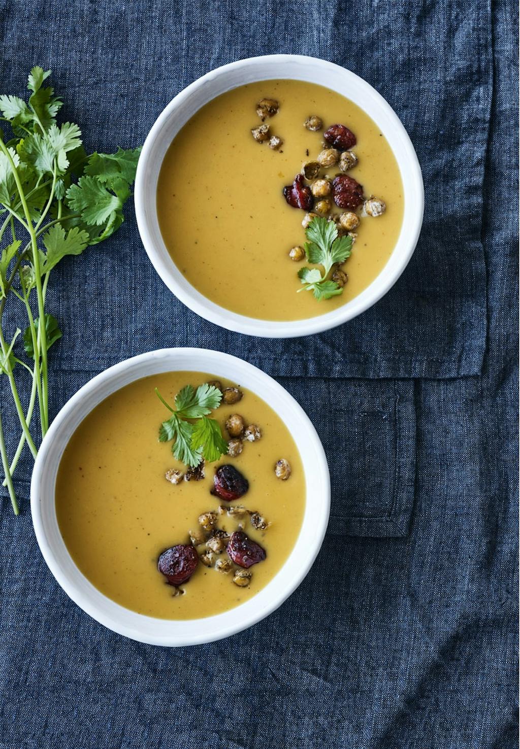 Vi byder suppesæsonen velkommen med en cremet orientalsk inspireret sød kartoffelsuppe med masser af smag og sprød topping.