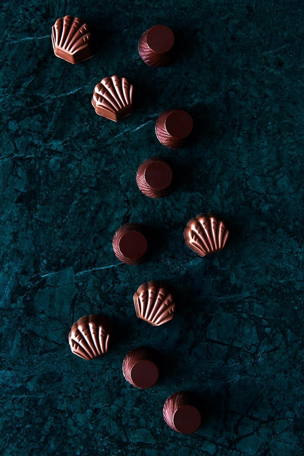 Fyld derefter ganachen i støbte chokoladeskaller. Luk af med tempereret chokolade, og lad dem krystallisere i formen.